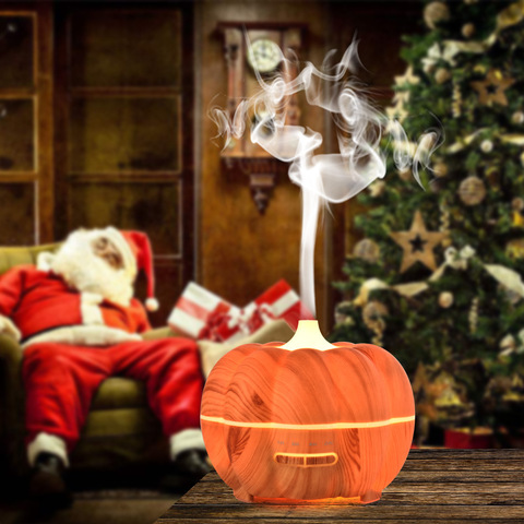 Nuevo difusor de aromaterapia de grano de madera de calabaza de Halloween de 400ml, difusor y humidificador de aceite esencial ultrasónico para el hogar
