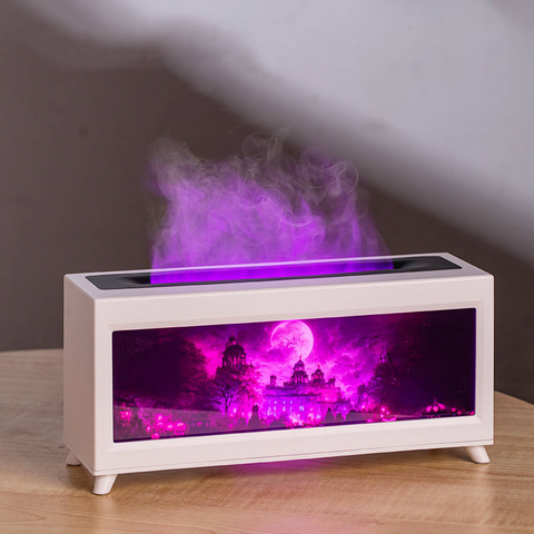 Estatuas pequeñas decorativas con temática de fantasmas de Halloween, mini escritorio realista, chimenea de montaña con llama de aceite esencial, difusor de Aroma